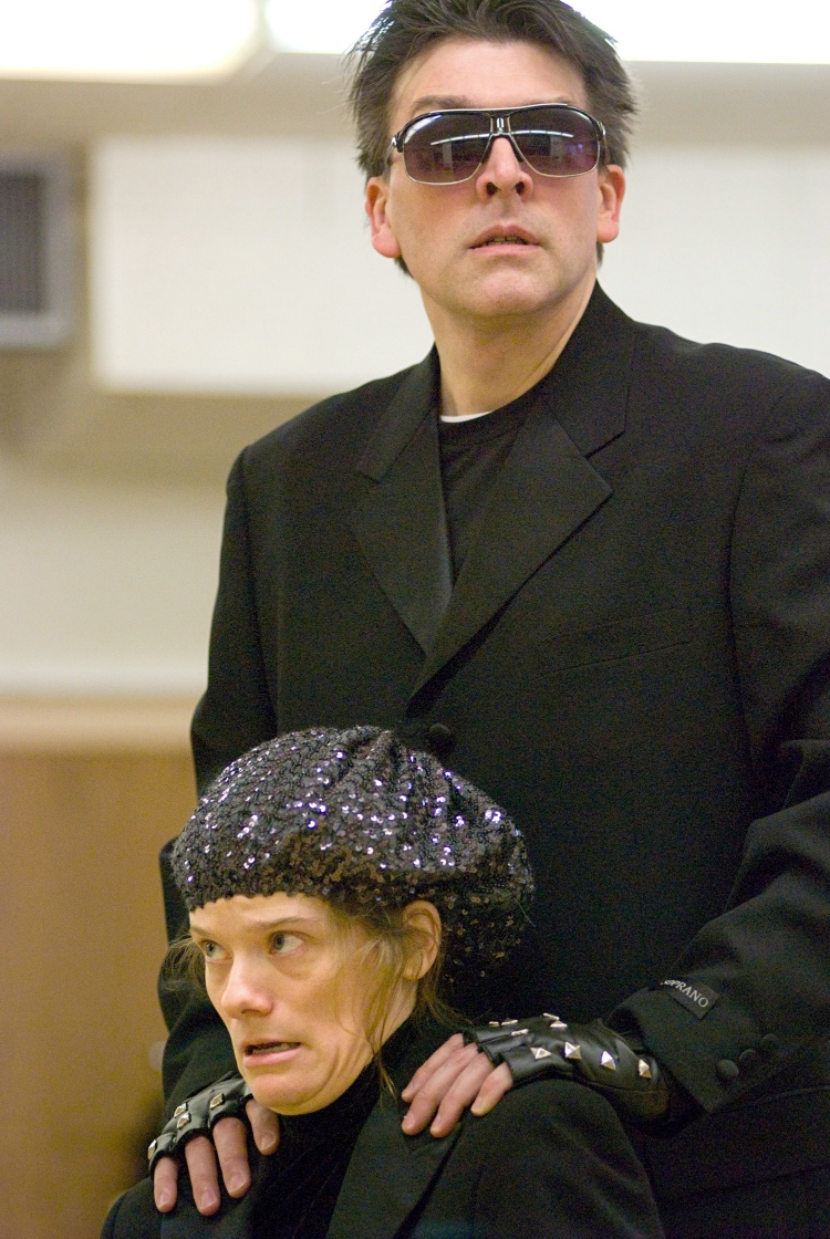 “All the world’s a stage” is but one of many observations about the life’s work of pretending that As You Like It offers. The action begins at the court of Duke Frederick (Bradley Greenwald), and quickly shifts to a nearby forest, a shift which prompts reflection on the differences between courtly habits and country customs. What accounts for this change in venue? Duke Frederick is really into banishing people, and for many of those banished, their exile prompts them to try on new identities. The Duke banishes his niece Rosalind (Maggie Chestovich) after he grows concerned that she’ll oppose him in the name of her already exiled father (also Bradley Greenwald). When Rosalind flees the court, she takes Duke Frederick’s own daughter, Celia (Aimee Bryant), with her. Friends since childhood, the two decide to make their way through the forest in disguise. Rosalind pretends to be a young man, named Ganymede, and Celia hides her noble birth by taking the name Aliena. Their cross-dressing and name-changing set up a series of encounters in which the lines between playing a part and being oneself get significantly blurred.
