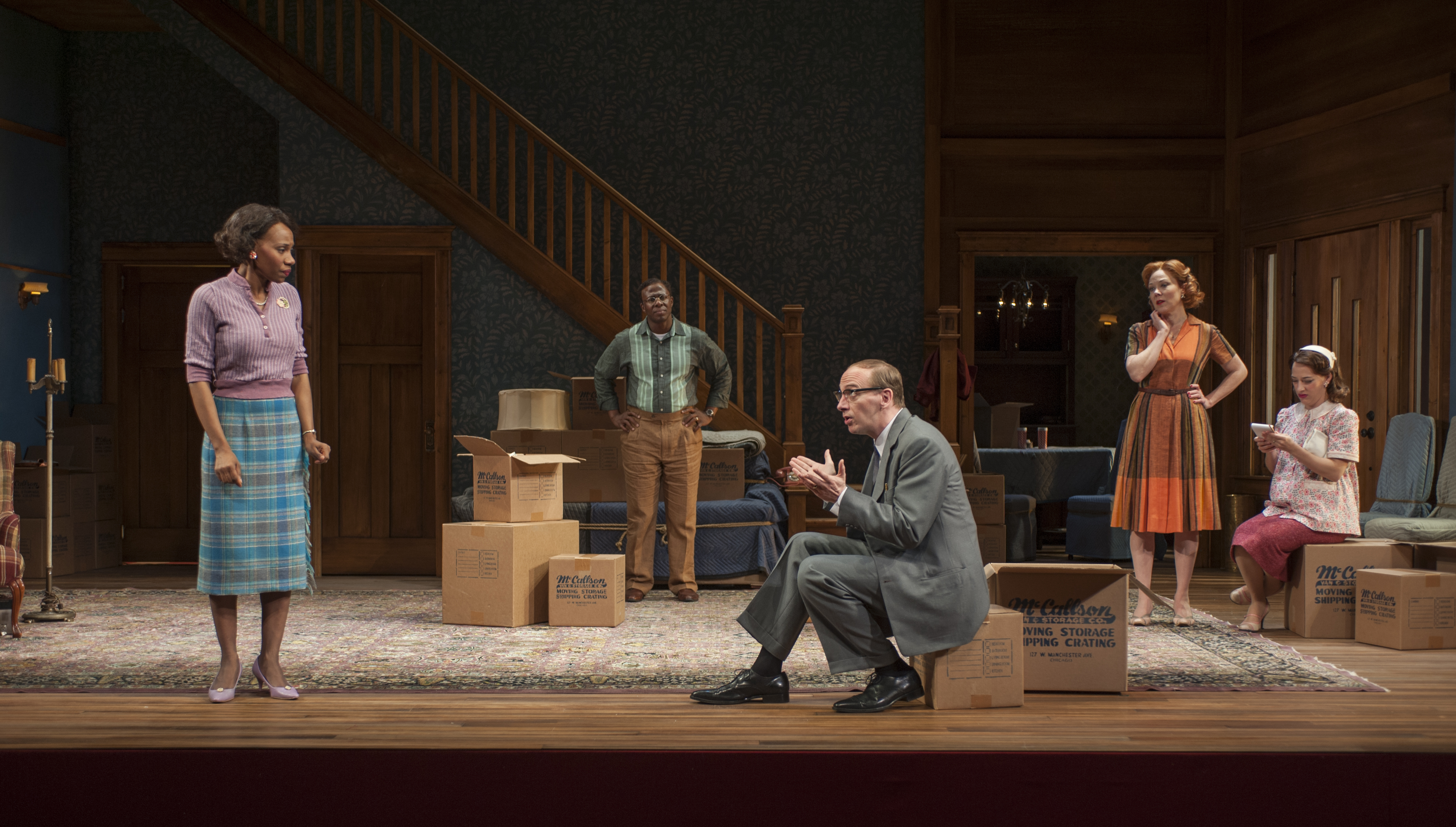 At times, being in the audience of this play feels painful. Even before the true drama of the first act unfolds, the couple Bev (played by Kathryn Meisle) and Russ (Bill McCallum) have already insulted a nearby grocery called Gilman’s (Irish, I assume?), a developmentally disabled neighborhood boy, an overweight woman, and a deaf character. This is before they and their neighbors callously argue about the black family moving into the new home in front of Francine (Shá Cage), an African-American woman employed as a maid, and Jim (Ansa Akyea), Francine’s husband. While the audience laughed throughout the production, the tone of the laughter changed as some of the moments are truly cringe-worthy. Most uncomfortable is the way so many of the characters talk over each other, protected in their privilege, and so comfortable in their assumptions that they can’t even hear the person across from them.