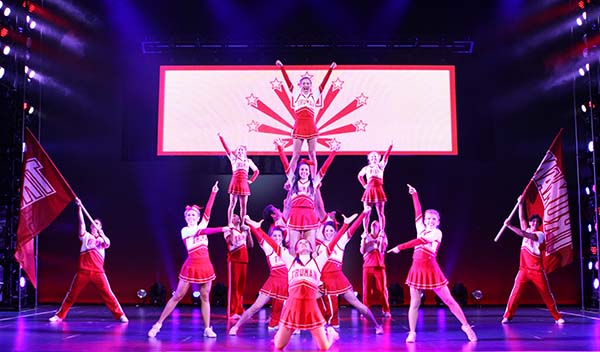 way to chip away at these stereotypes. But realistically speaking, the appeal of this show is its flashy, over-the-top style, and its well-choreographed dance numbers, complete with gasp-inducing aerial acrobatics. And on that front, Bring It On more than delivers. It’s full of bright colours and the set is made all the more versatile with a giant TV screen that adds depth to the scenery in a way that is not usually seen on stage. The singing is consistently good and the acting is solid. But of course, what really sucks the audience in are the dance (cheer?) numbers. Fast-paced, tight, and bigger and better with each passing song, the dance numbers leave the audience screaming their approval.
