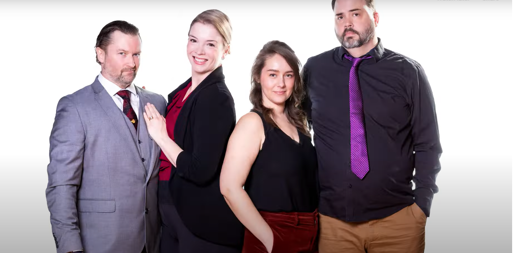 The players in this production (Michael Postle, Kendra Mueller, Mia Josimovic and D’aniel Stock in photo above) fully commit to the chaos and complexities of their characters. Kendra Mueller (as Annette Raleigh) gives a standout performance, navigating her character’s many mood changes from compliant and cooperative mother of the aggressor son to defiant and emboldened wife and neighbor.